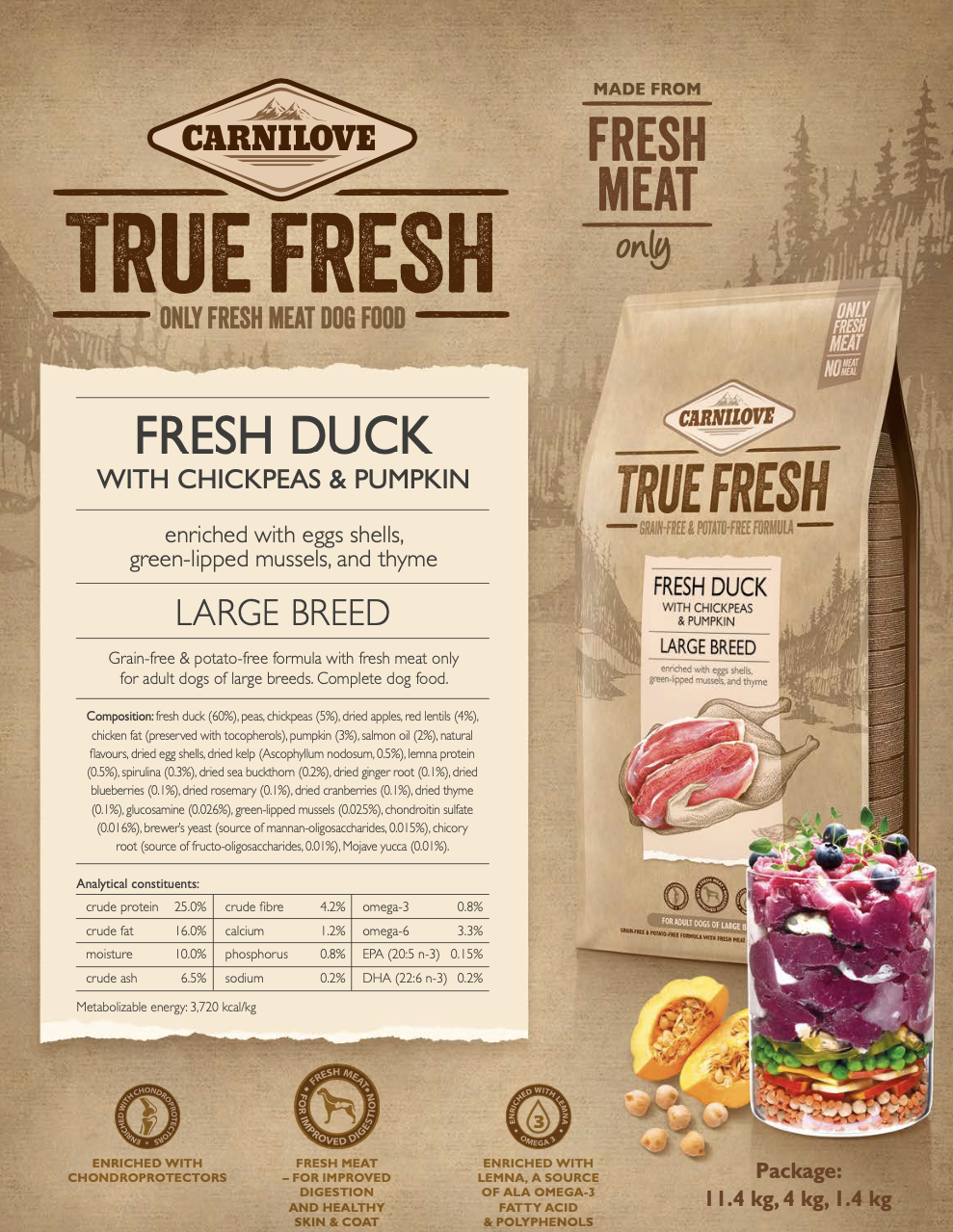 Carnilove True Fresh ADULT Large Breed - Eend 11,4kg