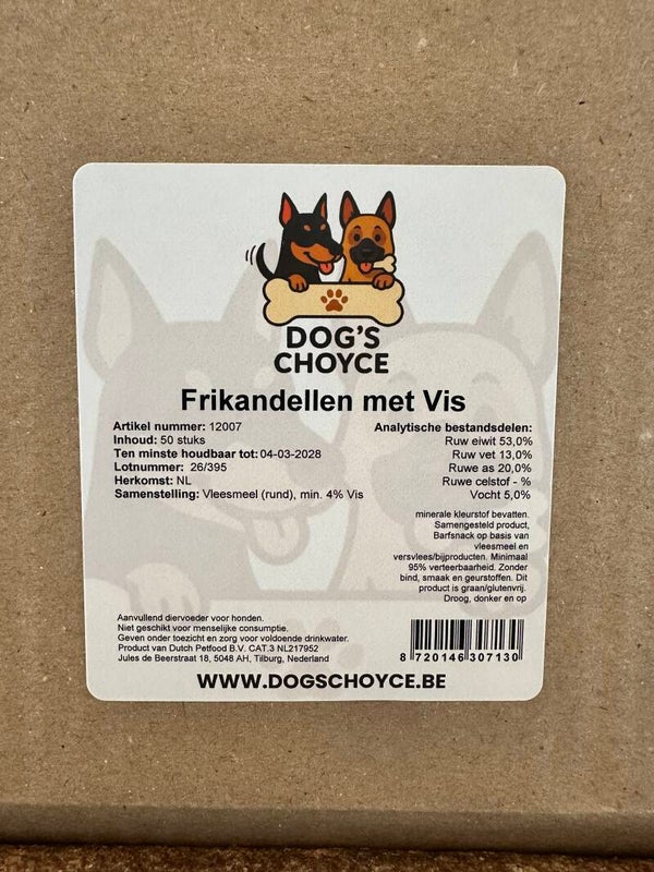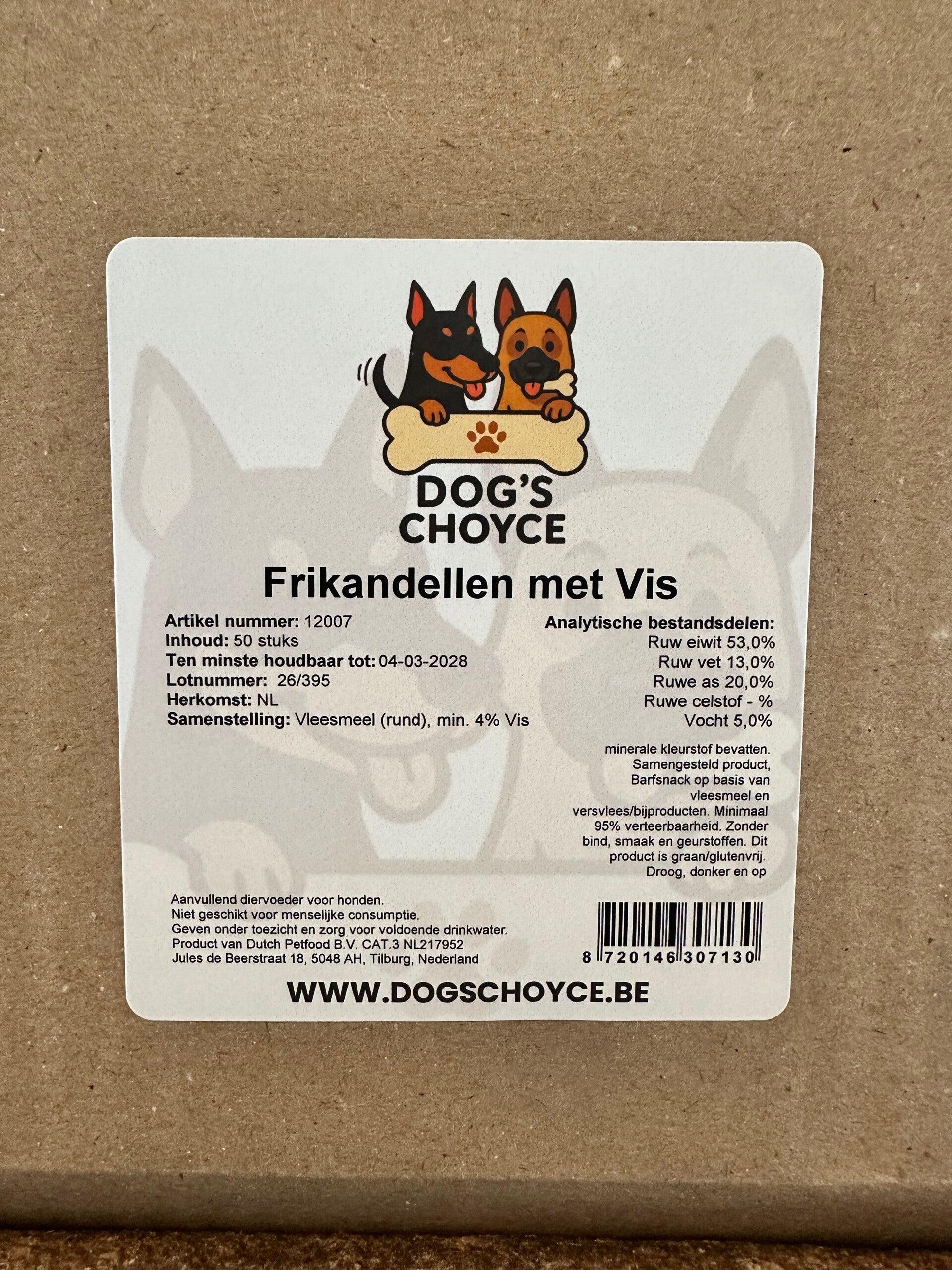 Vleesmeel (rund), min. 4% Zalm, Toevoeging E172 (ijzeroxide)